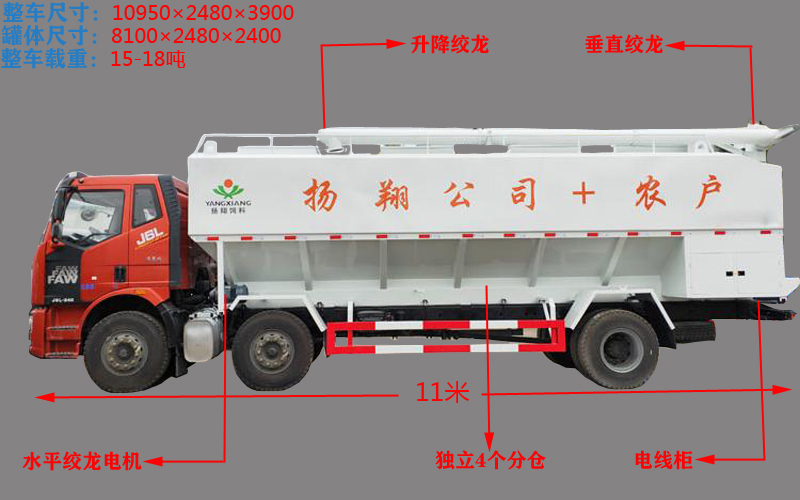 (3)料罐容積:30-34方4個(gè)獨(dú)立倉,實(shí)載:豬料18噸,雞料21噸