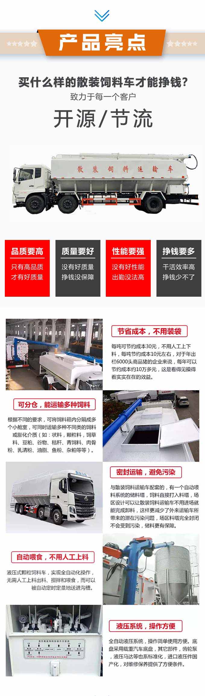 1、按卸料方式可分為:全自動液壓卸料散裝飼料車和電動卸料散裝飼料車。