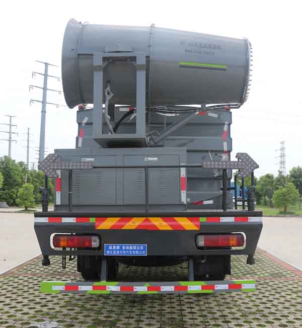 該車用途為抑塵降霾.主要裝置為罐體及噴霧裝置;罐體有效容積:10.1立方米;罐體外形尺寸(×長軸×短軸)(mm):3400×2450×1580;側、后防護材料均為:Q235碳鋼,連接方式均為:螺栓連接,后部防護截面尺寸(mm):120×50,后部防護離地高度(mm):450;ABS系統型號:ABS-VI.E;生產企業:廣州瑞立科密汽車電子股份有限公司.ABS系統型號:ABS-E;生產企業:威伯科汽車控制系統(中國)有限公司,ABS系統型號:3550D-1010;生產企業:東科克諾爾商用車制動系統(十堰)有限公司.采用4500mm軸距.選裝噴霧裝置樣式.選裝尿素罐位置,選裝電瓶位置。
