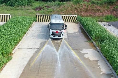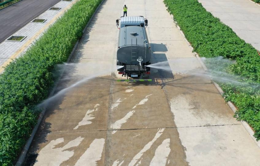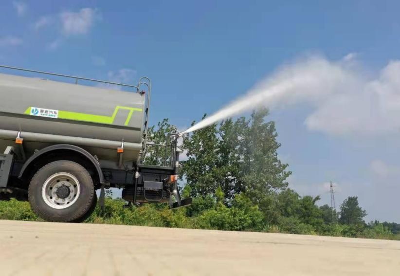 我公司產品標配前噴(鴨嘴)、后沖、后灑、側噴、后置式工作平臺,平臺上配置綠化水炮( 360°旋轉,既可以調成柱狀,也可以調成霧狀,更可以調成直沖狀、大雨、中雨、小雨、毛毛雨),配備優質大功率專用灑水泵可自吸自排,可從河里或池塘抽水到罐體取力器,雜物過濾網,消防接口,自流球閥系統、取力器、球閥、濾網均為國家標準產品,主管道加粗,法蘭墊、法蘭盤加厚,大通徑球閥。整體具備性能優良安全可靠、效率高、流量大、維修方便等特點。