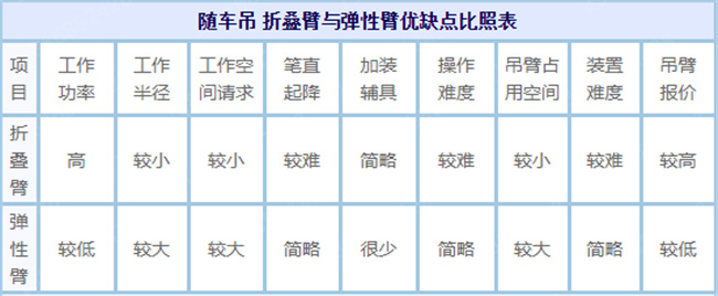 隨車吊 折疊臂與彈性直臂優(yōu)缺點(diǎn)比照表工作半徑