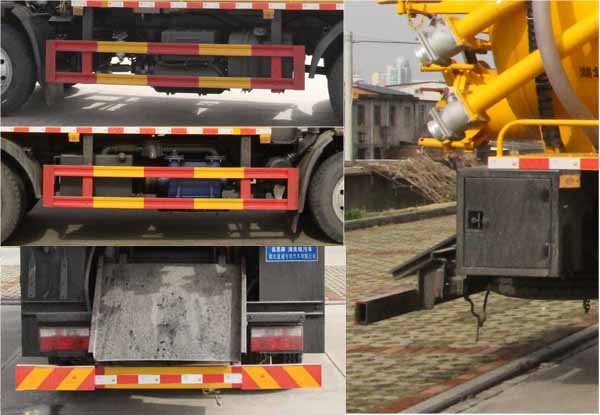 該車用于下水道排污及疏通,專用裝置:罐體、吸污泵、清洗沖刷總成.該車輛具有舉升功能,罐體外形尺寸(罐體總長×直徑)(mm):4900×1750(前面1600mm為清水罐,后部3300mm為污水罐);污水罐總容量:6.91立方米,污水罐有效容積:6.58立方米,介質:液態污物,密度800千克/立方米;清水罐有效容積:3.6立方米,介質:,密度1000千克/立方米;清水罐和污水罐為獨立罐體,清洗功能時用清水罐,吸污功能時用污水罐,污水罐和清水罐不可同時滿載,兩罐不可同時使用.ABS型號/廠家:ABS型號:ABS/ASR-24V-4S/4M,廠家:襄陽東風隆誠機械有限責任公司;側、后防護材料均為:Q235碳鋼,側、后防護均為螺栓連接,后部防護截面尺寸(mm):120×50,后部防護離地高度(mm):380;僅采用底盤3800mm軸距改裝.隨底盤選裝駕駛室,選裝油箱位置.選裝后部出口樣式,選裝側面樣式.隨底盤選裝車速89km/h.