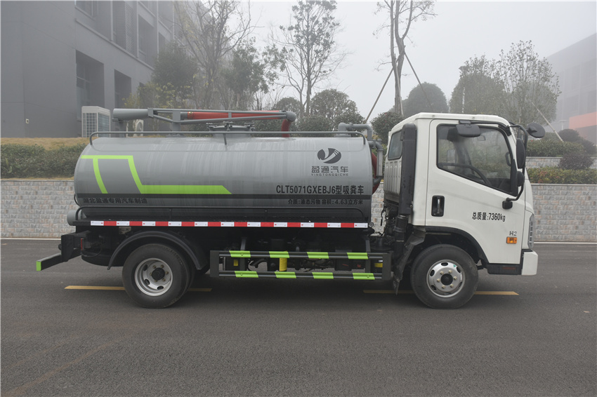該車用于糞便,污液的收集和清理作業(yè),主要裝置為罐體和吸糞裝置;罐體有效容積:4.63立方米;罐體外形尺寸(長(zhǎng)×長(zhǎng)軸×短軸)(mm):3500×1650×1200;隨底盤選裝駕駛室;側(cè)、后防護(hù)材料均為:Q235碳鋼,連接方式均為:螺栓連接,后部防護(hù)截面尺寸(mm):120×50,后部防護(hù)離地高度(mm):420;ABS系統(tǒng)控制器型號(hào)為CM4XL-4S/4M,ABS系統(tǒng)控制器生產(chǎn)企業(yè)為廣州瑞立科密汽車電子股份有限公司.選裝出口樣式。選裝油箱出口位置。