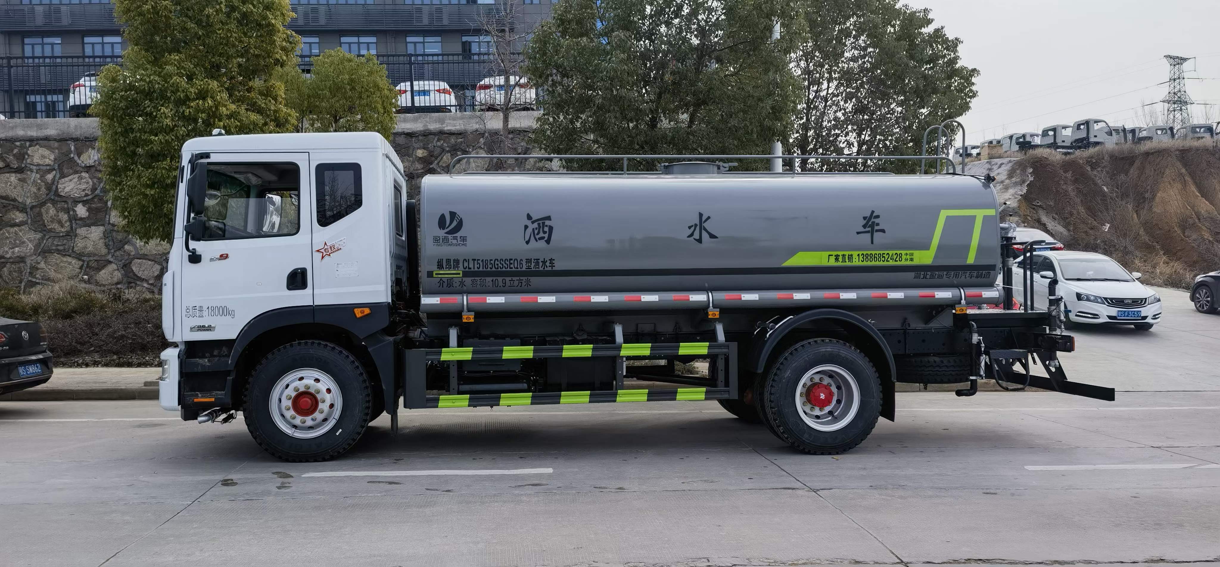5立方,罐體采用國(guó)標(biāo)Q235碳鋼材質(zhì),罐體厚度4MM,前后封頭5MM加厚型,罐體內(nèi)雙層隔板具有防波蕩作用,以減輕汽車行駛時(shí)罐內(nèi)液體沖擊;灑整車及外形尺寸嚴(yán)格按照機(jī)動(dòng)車公告制作而成;裝配大功率灑水泵,前沖、后灑、側(cè)噴、后平臺(tái)帶綠化灑水炮,灑水炮可旋轉(zhuǎn),可連續(xù)調(diào)成直沖狀、大雨、小雨、毛毛雨;工作范圍:自吸高度:≥7m,灑水寬度:≥14m,射程:≥16m;可調(diào)節(jié)成柱狀,射程≥20m;也可調(diào)節(jié)成霧狀;射程≥5m。配消防接口,自流閥,濾網(wǎng),帶自吸自排功能。前封頭帶水位計(jì),后平臺(tái)主管路帶1寸澆花接口,后爬梯,帶1個(gè)消防接頭,帶1個(gè)自流閥,1個(gè)過(guò)濾裝置,其余標(biāo)配。1、可選裝后平臺(tái)帶霧炮機(jī)組用于噴霧降塵、農(nóng)藥噴灑;2、可選裝前置電子灑水炮駕駛室操作;3、可選裝氣動(dòng)球閥駕駛室操作。