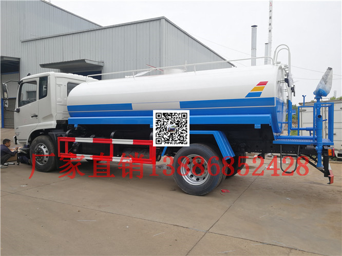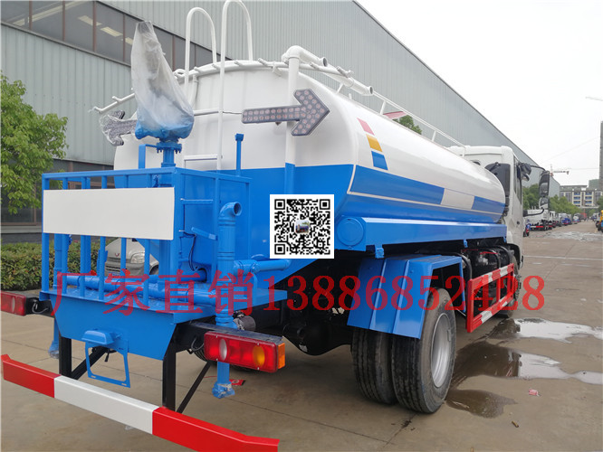 灑水車前裝有鴨嘴形噴嘴或圓錐形沖嘴,后面裝有圓柱形灑水噴嘴或蓮蓬頭噴嘴,后部有工作平臺,裝配有水炮。后還可裝8個(gè)噴嘴。