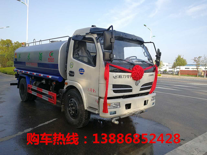 東風多利卡/凱普特運水車(6000--8000L)該車采用東風朝陽120馬力柴油發動機和東風康明斯140馬力柴油發動機,7.50-16輪胎,帶方向助力,帶增壓,不帶空調,汽剎,5檔變速箱,2.2噸前橋, 5噸后橋,整車外形尺寸:長×寬×高(MM) 6995×2300×2550,總質量(KG):11495,額定質量(KG):4300,整備質量(KG): 7000,該車罐體有效容積:6噸-8噸,帶國家免征公告。