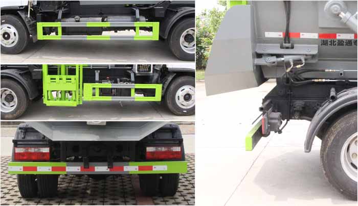 東風(fēng)餐廚垃圾車,藍(lán)牌餐廚垃圾車,廚后垃圾車,餐廚掛桶式垃圾車,多利卡自裝卸垃圾車,該車用于餐廚垃圾收集清運(yùn),主要專用裝置為垃圾收集箱和提升機(jī)構(gòu).側(cè)、后防護(hù)材料均為:Q235碳鋼,側(cè)防護(hù)采用螺栓連接,后防護(hù)采用焊接連接,后部防護(hù)截面尺寸(mm):120×50,后部防護(hù)離地高度(mm):430.ABS型號/廠家:ABS/ASR-12V-4S/4M/襄陽東風(fēng)隆誠機(jī)械有限責(zé)任公司,僅采用底盤3308mm軸距改裝.選裝側(cè)面樣式. |