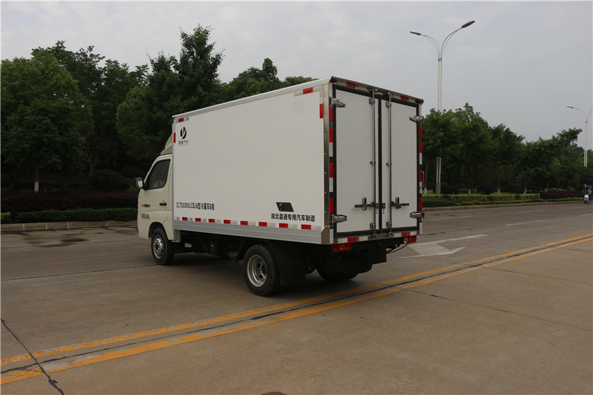 福田祥菱M1冷藏車采用國六汽油東安115馬力(DAM15KR發動機,5變速箱,2750軸距,高配,原廠空調,后雙胎,5檔變速箱,175R14后雙胎,122后橋,ABS,電動助力轉向