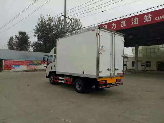 冷藏車廂體:采用國標A級聚氨酯保溫材料,厚度為8厘米,廂體內(nèi)外采用玻璃鋼材質(zhì)全包裹。不銹鋼鎖件。包角、包邊鋁合金型材。底盤采用高強度花紋鋁板定制。可選裝肉鉤導(dǎo)軌,和底部通風槽。