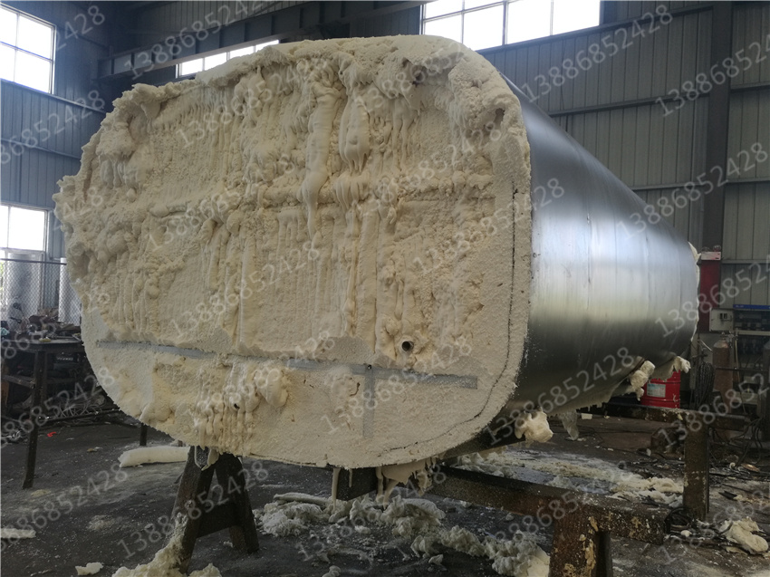 3. 保層溫的制作是在水罐外部另外焊接10mm厚的支撐骨架,然后用保溫材料將骨架內部填充滿,**在骨架外蒙上一層外皮。 保溫層外表鐵皮采用8mm厚高強度耐磨板,可選擇使用不銹鋼分鏡面8K或磨砂板