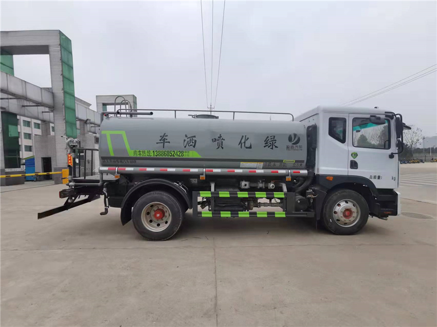 東風多利卡D9灑水車_D9玉柴200灑水車_D9康明斯灑水車_京牌灑水車_湖北盈通專用汽車有限公司,該車主要用于城鄉園林綠化噴灑;主要裝置為水罐及噴灑裝置;罐體總容量:12立方米,罐體有效容積:11.43立方米,罐體外形尺寸(×長軸×短軸)(mm):4500×2450×1610;ABS系統生產廠家,型號:焦作博瑞克控制技術有限公司,J ABS;襄陽東風隆誠機械有限責任公司,ABS/ASR-24V-4S/4M;隨底盤選裝限速裝置,限速裝置限速(km/h):89;側、后防護材料均為:Q235碳鋼,連接方式均為:螺栓連接,后部防護截面尺寸(mm):120×50,后部防護離地高度(mm):490.隨底盤選裝駕駛室.選裝燃油箱,電瓶,尿素罐,儲氣筒左右安裝位置.選裝噴霧裝置樣式,選裝后部樣式,選裝弧形噴灑裝置,選裝箭頭燈裝置,選裝水炮支架安裝位置;僅采用底盤3950mm軸距改裝.選裝自動球閥安裝位置。