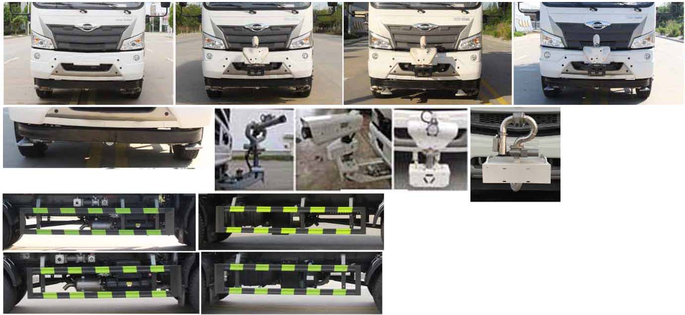 該車主要用于城鄉園林綠化噴灑作業;主要裝置為水罐及噴灑裝置;罐體總容量:11.66立方米;罐體有效容積:11.1立方米;罐體外形尺寸(×長軸×短軸)(mm):4200×2300×1450.運輸介質:,密度1000千克/立方米;ABS型號為CM4XL-4S/4M,生產廠家為廣州瑞立科密汽車電子股份有限公司.側、后防護材料均為:Q235碳鋼,連接方式均為:螺栓連接;后部防護截面尺寸(mm):120×50,后部防護離地高度(mm):480.隨底盤選裝限速裝置,限速88km/h.選裝前部電子水炮裝置樣式,選裝前部不帶電子水炮;當前部帶電子水炮時,前伸500mm,整車長度為8250mm,8000mm;當前部不帶電子水炮時,前伸為0mm,整車長度為7750mm,7500mm.僅采用底盤3950mm軸距改裝.隨底盤選裝新款前格柵,新款保險杠,新造型前霧燈.選裝油箱電瓶安裝位置,選裝車輛前部鴨嘴裝置.
